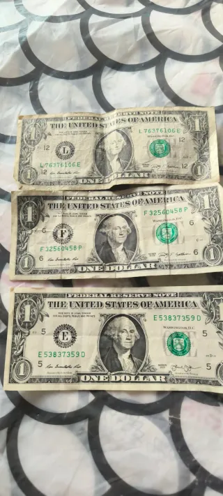 3 Billetes de 1 Dólar USA y monedas