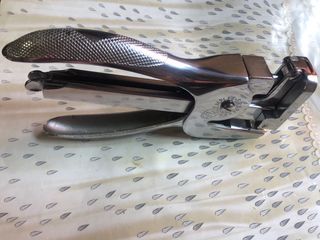 Grapadora de la marca El Casco, un clásico en herramientas de oficina. - Fabricada en metal cromado. - Diseño robusto y ergonómico. - Ideal para uso doméstico o profesional.