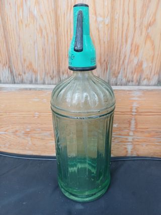 Bonito sifón antiguo de vidrio con tapón verde. Ideal para decoración o coleccionistas. - Material: vidrio y plástico. - Color del tapón: verde. - Diseño clásico.