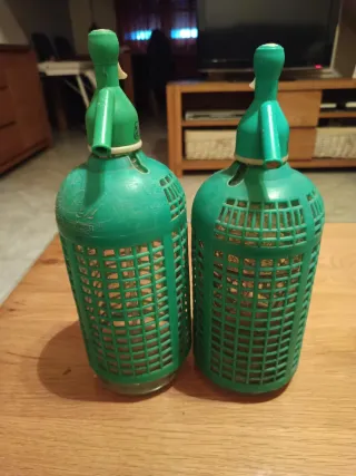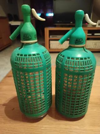 Dos sifones vintage de la marca Stel Carbonica en color verde. Un accesorio retro para tu hogar. - Diseño clásico. - Color verde. Precio de un sifón: 15€ Precio de dos sifones: 30€
