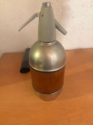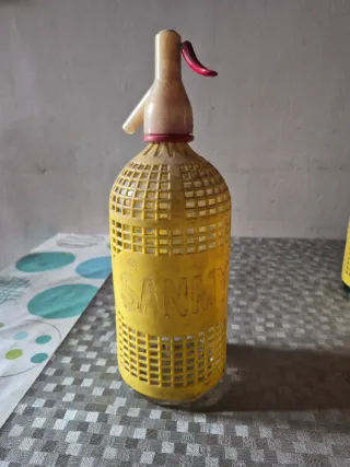 Sifón de agua de gas vintage de la marca Sanmy. Un accesorio retro para tu hogar.para coleccionistas o decoracion vintage.escaso,las fotos forman parte de la descripcion.envios por wallapop y posible entrega en mano zona local,se ruega seriedad,no cambios,no ofertas a la baja.no asumo los gastos de envio. - Color amarillo. - Diseño de rejilla. - Incluye palanca dispensadora.