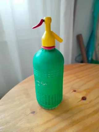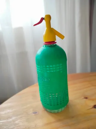 Sifón de agua carbonatada de color verde, ideal para coleccionistas o para dar un toque vintage a tu hogar. - Diseño clásico. - Materiales resistentes. Tengo 65 unidades. Se venden a 8€ unidad. Todas las unidades a convenir.