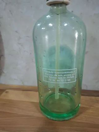 Bonito sifón antiguo de vidrio con tapón verde. Ideal para decoración o coleccionistas. - Material: vidrio y plástico. - Color del tapón: verde. - Diseño clásico.