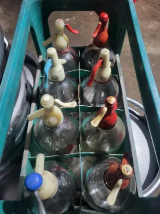 Se vende caja con 8 sifones de la marca La Revoltosa. Ideales para coleccionistas o para dar un toque vintage a tu hogar. Visite mi perfil tengo muchos mas sifones muy interesantes. - Marca: La Revoltosa - Material: Vidrio y metal - Capacidad: Aproximadamente 1 litro cada uno