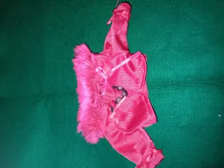 Chaqueta de color fucsia, ideal para muñecas Nancy. Presenta un diseño elegante con detalles que la hacen única. - Adorno de pelo sintético en el cuello. - Cierre con lazada y cuentas decorativas.