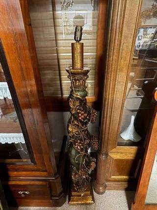 Elegante pareja de lámparas de pie antiguas con un estilo clásico. - Diseño con motivos de uvas y hojas. - Acabado dorado y verde envejecido. - Base cuadrada. 400€ las 2.