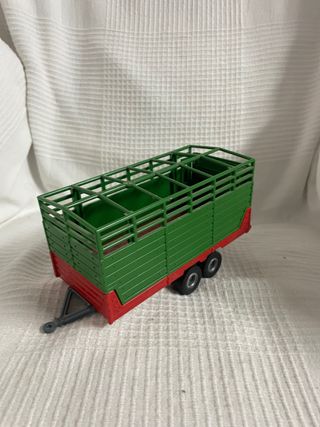 Remolque para transportar animales de la marca Siku, escala 1:32. - Diseño detallado. - Color verde y rojo.