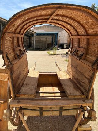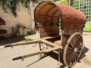 Carro antiguo tipo tartana, fabricado en el año 1890. Una pieza histórica con un diseño tradicional. Una autentica joya única de su género. Totalmente fabricado a mano (incluidos tornillos y tuercas roscadas). Restauración a mano por manos de un experto. Cuenta con: - Estructura de madera. - Ruedas de madera. - Toldo cubierto con tela y material natural. - Freno de emergencia - Asiento lara 4-6x personas En perfectas condiciones de uso. Apropiado para: - Exhibiciones feriales y camperas - Coleccionistas - Anticuarios - Exposiciones Precio: Negociable (18.500)