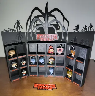 Expositor temático de Stranger Things, ideal para coleccionistas. - Diseño inspirado en la serie. - Los nombres se pueden insertar donde te guste. -Figuras no incluidas -Se puede entregar en mano en Albacete.