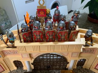 Set de Playmobil del Coliseo Romano con varias figuras. - Incluye el coliseo. - Varias figuras de soldados y gladiadores. - Escudos y armas.
