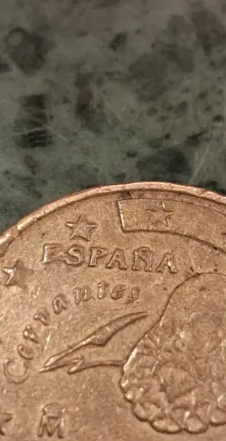 Moneda de 1 euro conmemorativa de España, año 1999. - Diseño de Juan Carlos I. - Ceca: M. - Canto: Estriado discontinuo. Con fallo en la E de España y la estrella ke se encuentra al lado aunke la verdad es una moneda una de cervantes de 1999 auténtica moneda para coleccionistas con bastantes fallos