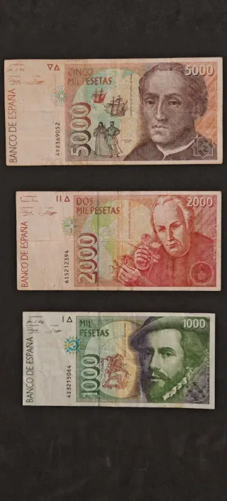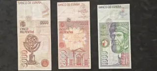 017 Billetes españoles pesetas 1000, 2000, 5000