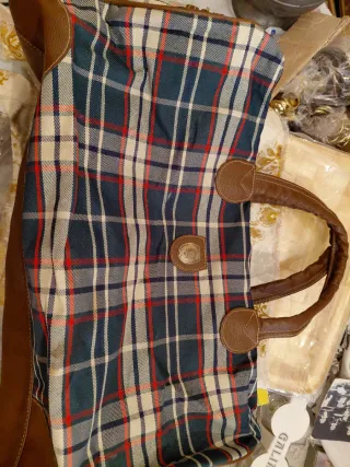 Picú antiguo con un diseño clásico. - Color azul verdoso. - Ribete en color crema. - Asa central. - Cierres metálicos dorados.