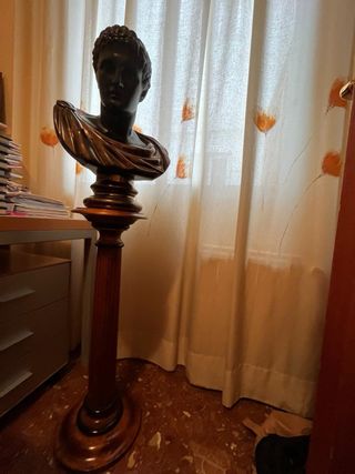Elegante conjunto escultórico de estilo neoclásico, ideal para salones, despachos o recibidores que busquen un toque de distinción y atemporalidad. El lote incluye dos piezas perfectamente integradas: busto y pedestal. Estado: Impecable. Sin desconchones, grietas ni señales de desgaste.