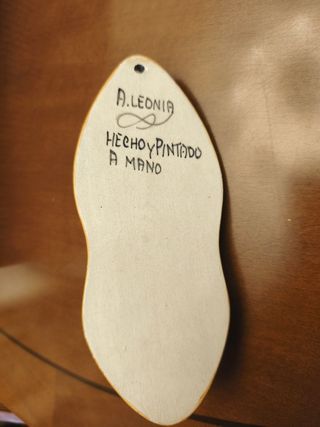 Benditera de porcelana con un diseño floral. - Decoración pintada a mano. - Tonos verdes y dorados. - Ideal para colgar en la pared.