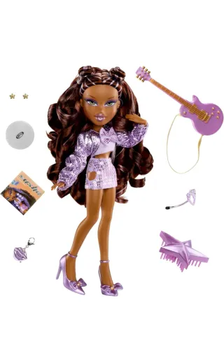 Muñeca Bratz Pop Starz de Sasha, lista para el escenario. Incluye su guitarra morada. - Muñeca Bratz Pop Starz. - Incluye guitarra. - Diseño de estrella del pop.