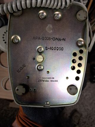 Teléfono fijo antiguo de la marca Telefonica. Un clásico que evoca otra época. - Diseño retro. - Color beige. - Marcación giratoria. Ese teléfono que tienes ahí es un CITESA de Málaga, modelo 8009-GOA-M, un clásico de la Compañía Telefónica Nacional de España (CTNE). Básicamente, es el equivalente español del teléfono de disco de toda la vida, fabricado entre los años 60 y finales de los 70. Te resumo sus características, sin poesía: Fabricante: CITESA (Compañía Internacional de Telecomunicaciones y Electrónica S.A.), Málaga. Modelo: 8009-GOA-M. Marcación: por disco rotatorio Estado como se ve. Funcional