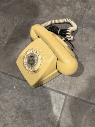 Teléfono antiguo con diseño clásico de disco. De marca Citesa empresa española que fabricaba teléfonos para Telefónica muy común entre los años 60–80. - Color beige. - Cable en espiral.
