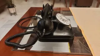 Teléfono antiguo de baquelita Español. Totalmente restaurado. El dial avanza y retrocede con su caracteristico sonido. Recibe llamadas y suenan las campanas. En algunos ruter de Vodafone o Telefonica también se pueden hacer llamadas. GASTOS DE ENVIO INCLUIDOS EN EL PRECIO