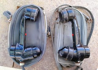 Genéfonos con clavija y bolsa de transporte original años 60. Son teléfonos de campaña franceses, de la marca SEA Genephone)-Société d'électronique et d'automatisme, modelo 138.BD, con los magnetos incluidos, utilizados por el ejército español cuando los comercializó la empresa española Indesa. Tienen el desgaste propio del uso y una de las bolsas, la de los enganches oxidados, tiene la cremallera rota. La otra está perfecta. Precio: 150€ cada uno o 280€ por los dos.