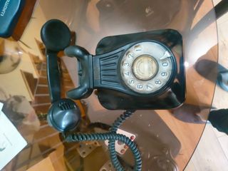 Teléfono fijo de disco de los años 40, un auténtico objeto de colección. - Diseño clásico en color negro. - Marcación por disco. - Cableado visible.