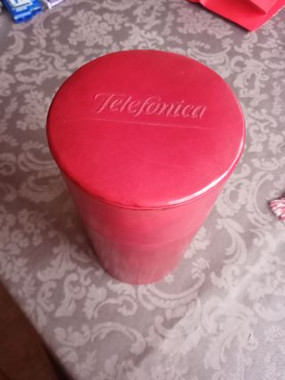 Caja antigua de cuero, color burdeos/rojo vino de Telefónica. Hecha a mano. Por dentro es de terciopelo.