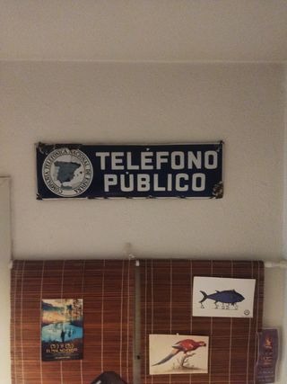 Preciosa placa esmaltada de teléfono público de la antigua Telefónica Nacional de España. Ideal para decoración vintage o coleccionistas. - Placa esmaltada en buen estado de conservación. - Presenta señales normales de uso y paso del tiempo. - Medidas aproximadas: 47x14 - Perfecto para decoración retro.