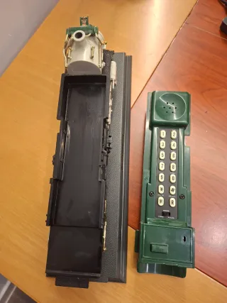 fabricada en los años 90 por Telemania, ideal para coleccionistas, decoración retro, despachos, bibliotecas o amantes del mundo ferroviario. Incluye teclado numérico, selector de marcación Tone/Pulse, interruptor de timbre y conexión RJ11 para línea telefónica tradicional. El timbre funciona con 2 pilas AA. 📌 Estado: muy bueno, sin roturas ni piezas faltantes. Presenta leves marcas normales del paso del tiempo. 📐 Diseño muy detallado, con acabados cuidados y base expositora incluida. ❗ Hoy en día se usa principalmente como objeto decorativo o de colección. Se vende tal cual se ve en las fotos.
