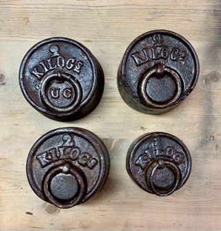 Antiguos pesos de tahona; de 2 kgs y 1 kgs; ideales para decoración , uso o coleccionistas. Atiendo también por teléfono y whasapp. 680838837.