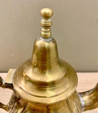 Antigua tetera moruna de laton repujado , ideal para decorar o como regalo. Mide de alto 20 cm y 22 cm de ancho total. Atiendo también por teléfono y whatsapp 680838837.