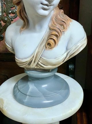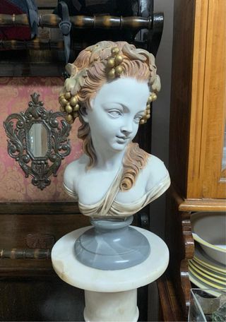Antiguo busto de escayola esmaltada de la hija de Baco; ideal para decoración. Mide de alto 43 cm. Atiendo también por teléfono y WhatsApp 680838837