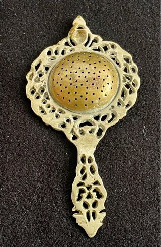Precioso y antiguo colador de té ; principios de 1900 de Inglaterra. Ideal para decoración de latón dorado de 15 cm. Atiendo también por teléfono y WhatsApp 680838837