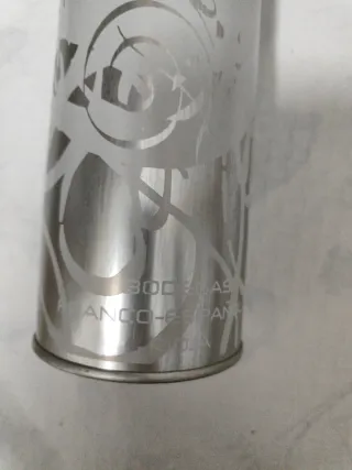 Elegante envase cilíndrico de metal con diseño de la marca "Diamante", que es un vino blanco de Rioja producido por Bodegas Franco-Españolas. . Marca: Diamante Tipo: Vino blanco semidulce Origen: Denominación de Origen Calificada Rioja Productor: Bodegas Franco-Españolas Características: Conocido por su perfil afrutado y fresco Dimensiones: 35cm de largo x 5cm de ancho. - Marca: Diamante - Material: Metal - Color: Plateado - Diseño grabado