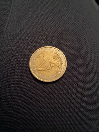 Moneda de 1 euro de Irlanda con el diseño del arpa. - Año de acuñación: 2002. - Diseño nacional: Arpa celta.
