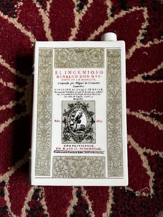 Petaca de coleccionista con diseño inspirado en El Ingenioso Hidalgo Don Quijote de la Mancha de Miguel de Cervantes Saavedra. - Diseño detallado inspirado en la portada de la obra. - Ideal para coleccionistas y amantes de la literatura clásica. Petaca vintage/coleccionable con diseño inspirado en la portada clásica de “Don Quijote de la Mancha” (1605). Muy bonita y original, ideal para coleccionistas, amantes de la literatura española o como regalo. Estado bueno, tal como se ve en las fotos.