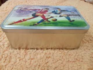Caja conmemorativa de la final de la Copa del Rey de fútbol de 2021. - Diseño con jugadores y escudo. - Fecha: 03/04/2021. -Medidas: alto 7cm, largo 19'5cm y ancho 13cm.