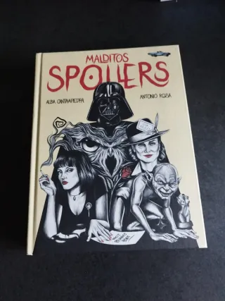 Libro Malditos Spoilers de Alba Cantapiedra y Antonio Rosa. Una obra que combina referencias culturales. - Portada con ilustraciones de personajes icónicos. - Título: Malditos Spoilers. - Autores: Alba Cantapiedra y Antonio Rosa.
