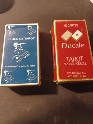 Se venden dos barajas de tarot originales. - Una baraja es Le Jeu de Tarot de la Fédération Française de Tarot. - La otra baraja es Ducale Tarot Special-Cercle con 78 cartas .