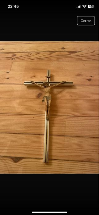 Figura de Cristo crucificado sobre una cruz de madera. - Detallada figura de Jesús. - Cruz con diseño clásico.