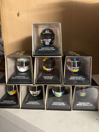 Colección de cascos de Valentino Rossi a escala. - Winter Testing 2007----------30€ - MotoGP Philip Island 2004-40€ - GP 125 1996-----------------40€ - Winter Testing 2005-------40€ - MotoGP Valencia 2003---40€ - MotoGP Mugello 2006---35€ - MotoGP Assen 2007------40€ - MotoGP Mugello 2007---35€ -Son de la marca Minichamps. -Comprando el lote se hace precio.