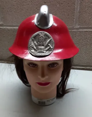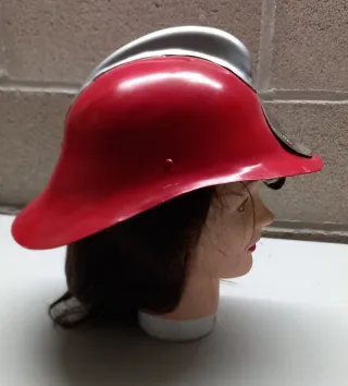 Casco de bombero con un diseño inspirado en el estilo alemán. - Material resistente y acabado brillante. - Detalle de cresta metálica en la parte superior.