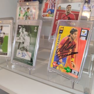 Colección exclusiva de cartas originales firmadas por futbolistas andaluces que han ganado títulos oficiales con la selección española. El lote incluye piezas firmadas de Marchena (Mundicromo 2001-02), Jesús Navas (Topps 2022-23), Sergio Ramos (Adrenalyn Mundial 2010), Juanito (Mundicromo 2007-08), Güiza (Megacracks 2008-09), Fermín López RC (Topps 2023-24), Reyes (Adrenalyn 2010-11), Fabián Ruiz (Topps 2022-23), Álex Baena Auto (Panini Select 2023-24) y Gavi (Topps 2022-23). Lote de gran rareza y valor, ideal para coleccionistas de España, La Roja o jugadores andaluces.