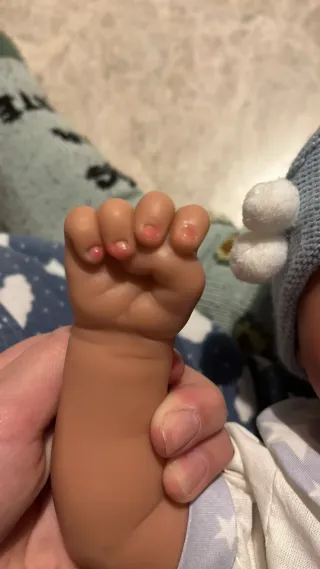 Muñeca realista con conjunto de ropa incluido. - Ropa de bebé con estampado de estrellas. - Gorrito azul de punto con pompón. -defectos incluidos en fotos