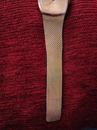 Elegante reloj Constellation con una estética clásica.no funciona - Esfera de color champagne. - Pulsera de malla metálica. - Diseño de caja en forma de cojín.
