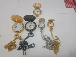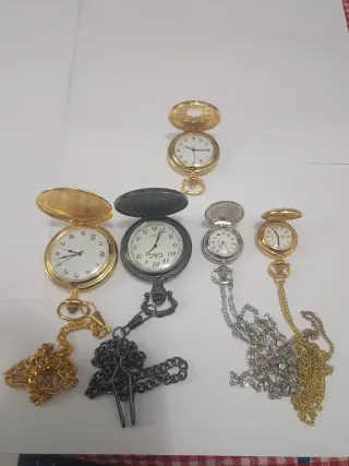 Relojes de bolsillo, de cuarzo nuevos, el de atrás no funciona, los demás todos.