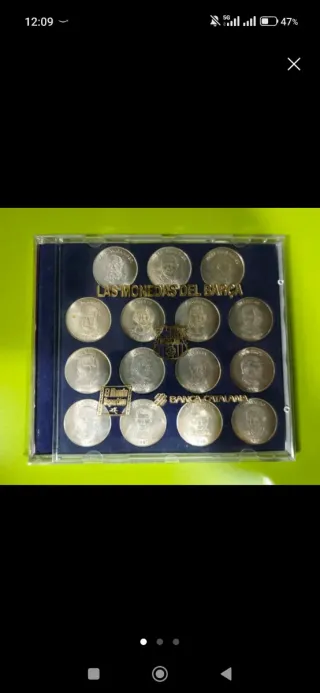 Colección de monedas conmemorativas del FC Barcelona. - Incluye retratos de jugadores y leyendas del club. - Presentado en estuche tipo CD. - Diseño con el escudo del club.