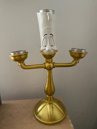 Portavelas inspirado en el personaje Lumière de La Bella y la Bestia. Un toque mágico para tu hogar. - Diseño detallado del personaje. - Acabado dorado. - Soporte para velas.