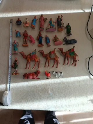 Conjunto de figuras antiguas para el belén o nacimiento. - Incluye personas, animales y accesorios. - Ideal para coleccionistas o para montar tu propio belén.