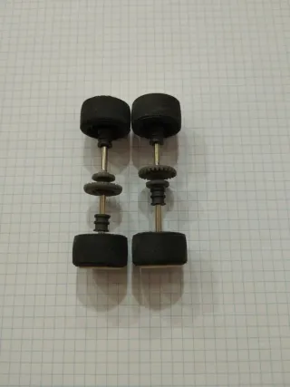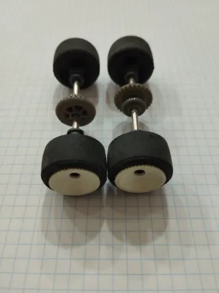 Dos ejes Scalextric para Audi. Venta por cierre de negocio. - Incluye ruedas y engranajes. - Ejes metálicos.