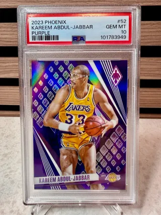 - Trading Card del año 2023. - Posibilidad de entrega en mano durante la SDCC Málaga. - Colección: PANINI PHOENIX. - Versión: PURPLE. - Cromo: KAREEM ABDUL-JABBAR #52. - POP 2. Según los registros de PSA solo existe 2 copias de este cromo en Grado 10. - Perfecto estado conservación. Presentación impecable en funda protectora PSA. --------- 👉 PSA 10 GEM MT. ✅ PSA Certification Verification #101783949. -------- 🤝 Pago por Bizum, Wallapop, Transferencia o PayPal. 👀 Gracias por tu visita. Revisa mi perfil para otros cromos gradeados.